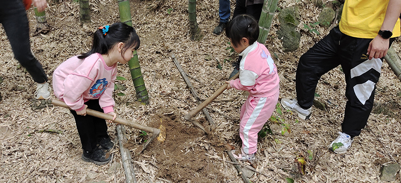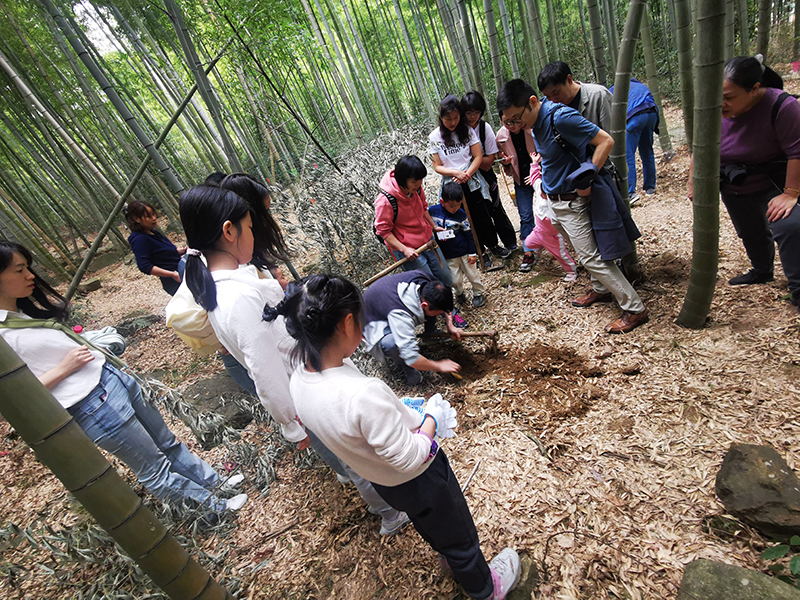 春日里的第一站,是臨安白水澗景區。大家呼吸著春日的氣息,融入綠意里,賞澗之幽、水之清、竹之翠、石之奇,彷佛置身桃源……遠山蜿蜒,細霧如紗,竹影婆娑,綠意盎然。竹筍才生黃犢角,蕨芽初長小兒拳,正是春筍好時節。大家游竹海、挖春筍,個個挽起袖子,勁頭十足,挖得熱火朝天。幾鋤頭下去,酣暢淋漓,一顆顆小筍子,透鮮透鮮的,被小心地翻開上層的泥土,冒出頭來,撞上春日的第一縷陽光。大家興奮地捧著自己挖的筍,享受著團結協作、共同勞動的喜悅。